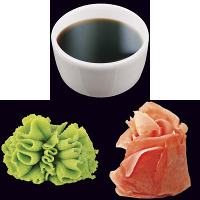 Имбирь 15 гр, васаби 5 гр, соевый соус 40 мл. Если нужно больше, закажите дополнительно.
